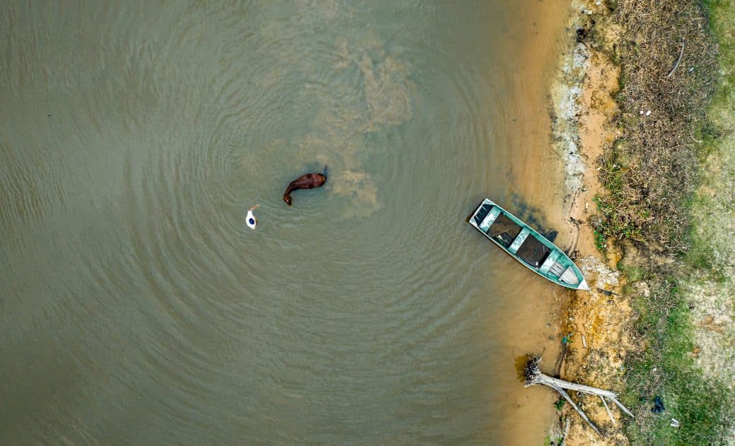 A fisherman bathing his horse in the Paraguay River. Elisa Marecos and Sandino Flecha