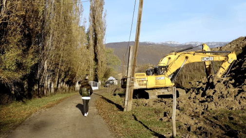 Mining equipment works along a residential road in the Chiatura region. Local Environmental Initiative