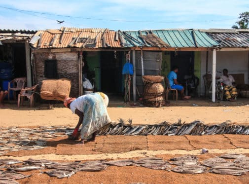 Pitipana village is located near Sri Lanka’s capital Colombo, and is known for its coastal fishing and fishermen. When the fishermen go out to sea the women and children wait until the boats come to shore with their day’s catch. They then sell the fish at the road-side market. Their life changed when the sand dredging destroyed the coral reefs by spreading fine silt over them, which also destroyed the fishing grounds. They could no longer find reef fish, shrimp or crabs and their catch become very small every day.