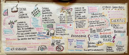 - los cuidados, en general asumidos por mujeres en toda su diversidad, como parte fundamental de la lucha contra los extractivismos y de la fuerza para las resistencias.